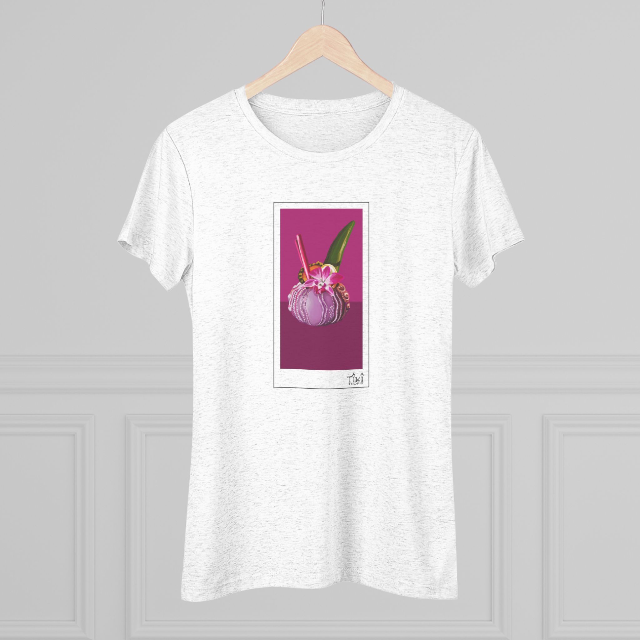 This Women’s Tiki Drink Urchin Tri-Blend Tee With Black Logo is cozy and a perfect fit t-shirt. This t-shirt is made in with a triple fabric blend that is incredibly soft with great drape, stretch, and recovery. Made of polyester, combed ring-spun cotton and rayon, it is not only a cozy beauty but also made to last. Get the perfect basic with a vintage look.